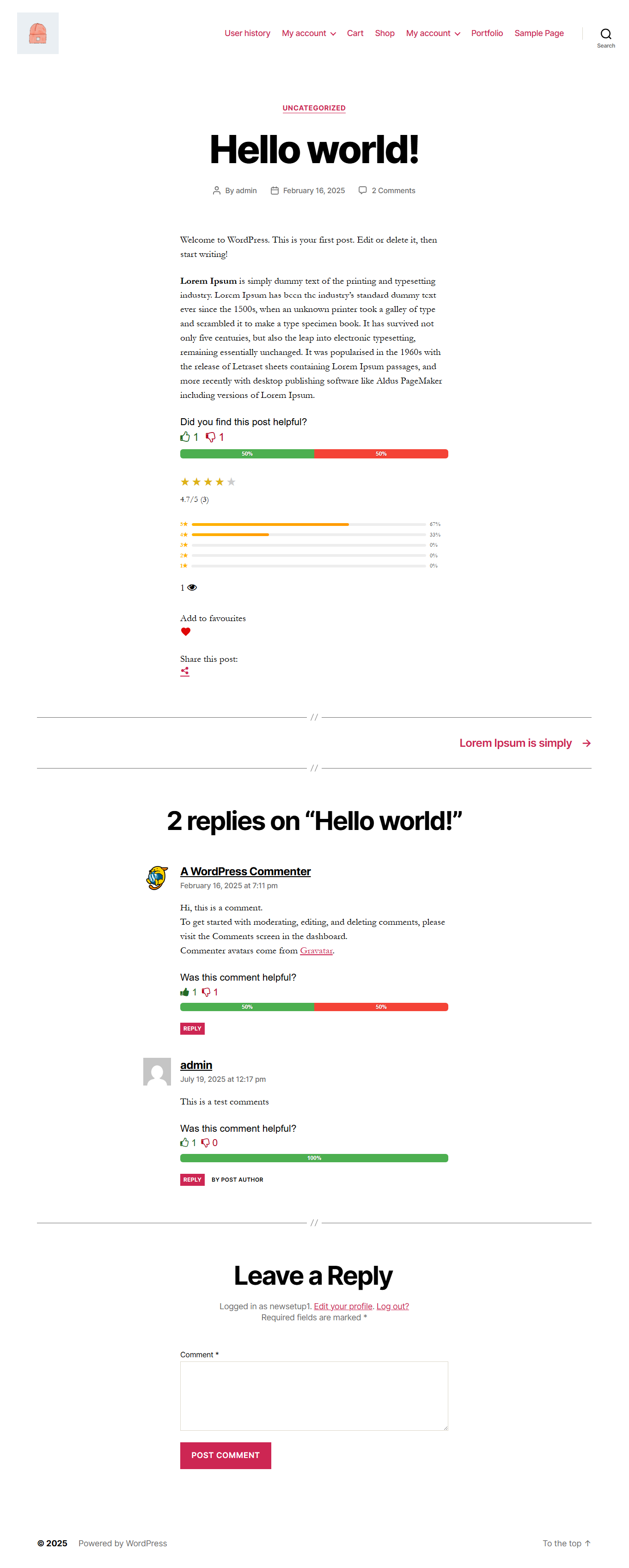 [ldppp_user_history]– Shows all user activity (likes, dislikes, ratings, and comment votes).[ldppp_user_likes]– Displays all liked or disliked posts/products by the user.[ldppp_user_ratings]– Lists all user-given ratings with average rating details.[ldppp_user_comment_votes]– Shows comment like/dislike history.- Added simple, responsive layout for displaying user activity lists.